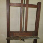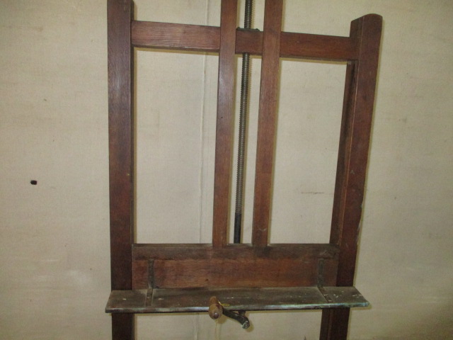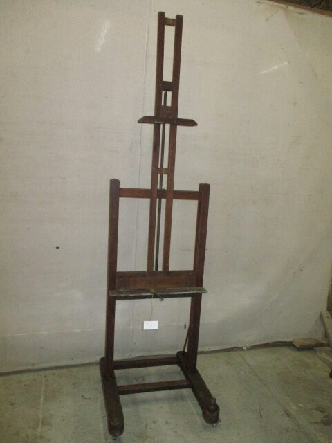Description: Artist easel, French ,walnut with a hand crank. The height is adjustible