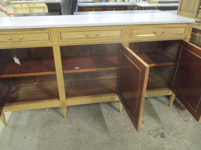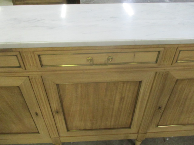 Stock Number: 2258084 Origin: France Circa: 1900's Height: 41" Width: 78.5" Depth: 20.5" Description: Louis XVI bleached enfilade with a white marble top