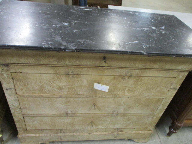 Bleached elm wood Louis Philippe chest with a marble top