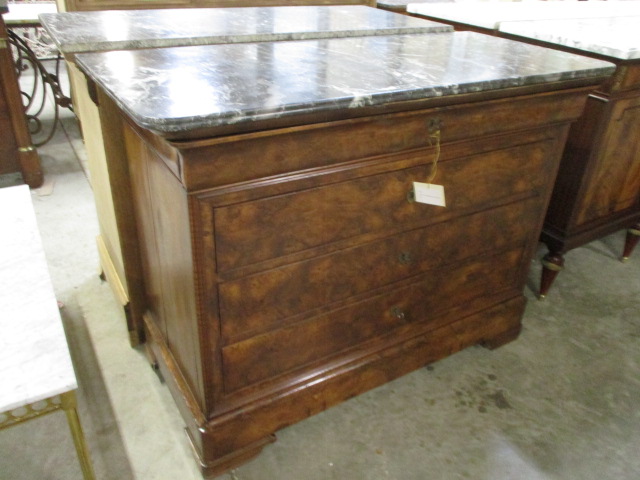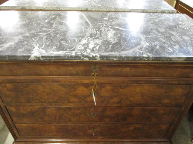 Description: Burl walnut Louis Philippe chest w/ marble top