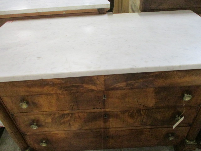 Description: Walnut Emire chest with a marble top