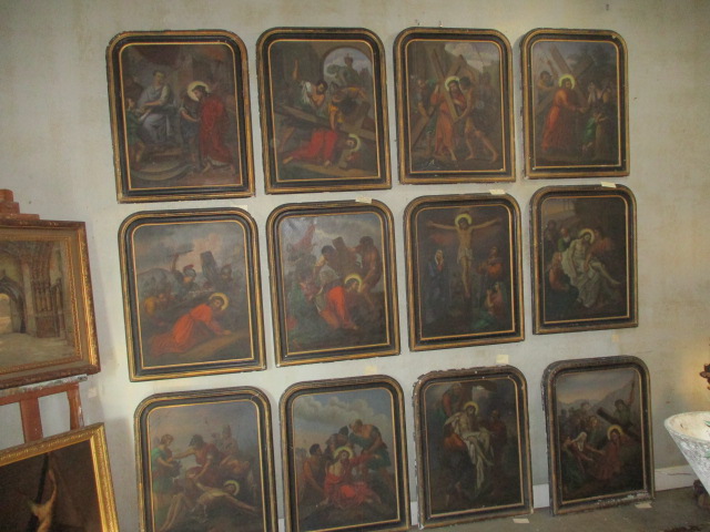 Home » Mirrors & Wall Decor » Paintings » Station of the Cross painting in original Louis Philippe frame