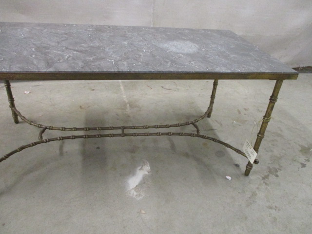 Description: Faux bamboo coffee table with a marble top