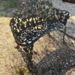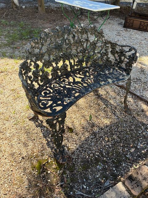 Stock Number: 2259038 Origin: France Circa: 1900's Height: 28.5" Width: 38.25" Depth: 22.75" Description: Iron Garden Bench-From top of seat to floor is14 inches