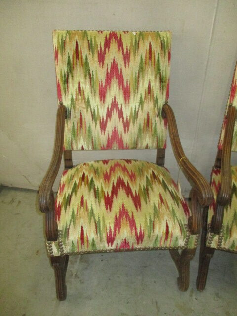 Stock Number: 2257271 Origin: France Circa: 1920 Height: 44.5" Width: 24.5" Depth: 28" Description: Louis XIV Walnut Arm Chairs-Price is for each-From top of seat to floor is 20 inches