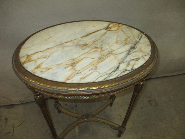 Description: Marble top gilded table