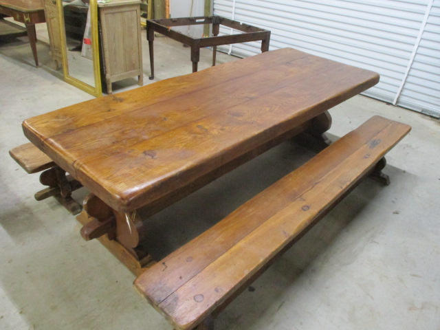 Description: Monastery table with two optional benches. Table seperate from benches $2460 Benches seperate from table $250. each