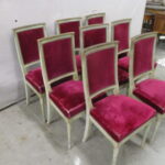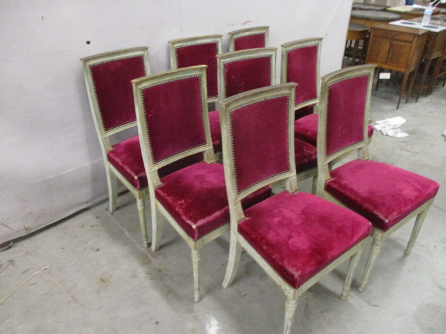 Stock Number: 2254547 Origin: France Circa: 1900's Height: 34.5" Width: 17.25" Depth: 15.25" Description: Set of eight directoire dining chairs. Seat is 18" high