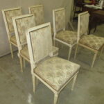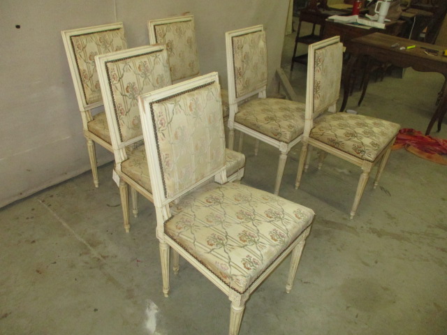 Stock Number: 2257039 Origin: France Circa: 1900's Height: 35.5" Width: 19" Depth: 17.5" Description: Set of Six Louis XVI Chairs-From top of seat to floor is 19 inces