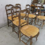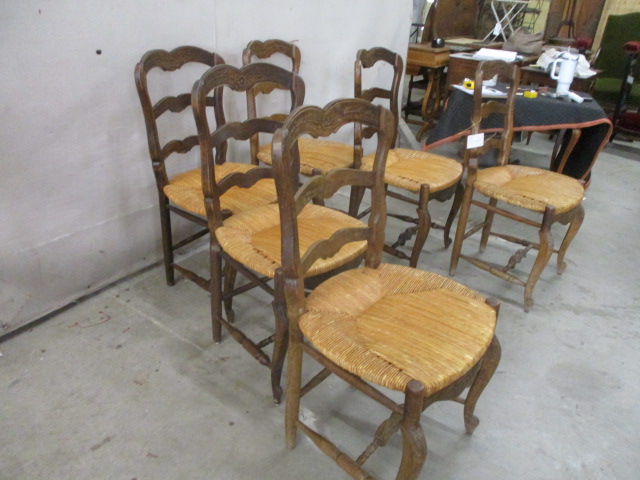 Stock Number: 2254676 Origin: France Circa: 1900's Height: 37" Width: 18.25" Depth: 18" Description: Set of Six Provincial Chairs-From top of seat to floor is 18 inches