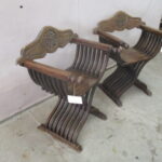 Stock Number: 2257002 Origin: Spain Circa: 1900's Height: 32.25" Width: 23" Depth: 19.5" Description: Spanish Chairs-From top of seat to floor is 17.75 inches-Price is for each