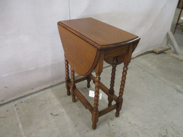 Stock Number: 2256205 Origin: England Circa: 1900's Height: 29.5" Width: 13" Depth: 23.5" Description: Victorian Gate Leg Table-Width when opened is 35.25 inches