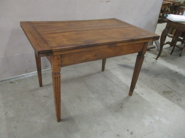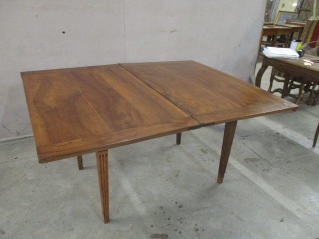 Stock Number: 2257103 Origin: France Circa: 1910 Height: 29.5" Width: 46" Depth: 29" Description: Walnut Louis XVI Table-Width when open is 57.75 inches